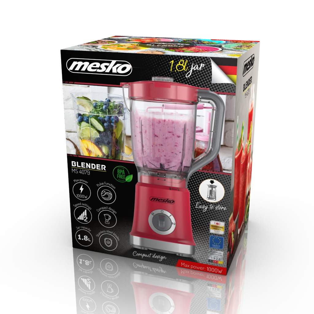 Kod Towaru: 5902934836227, Przygotowujesz koktajle, smoothie, zupy krem, gładkie sosy lub inne płynne i półpłynne produkty. Potrzebujesz lekkiego i łatwego do przechowywania blendera. W takim razie blender Mesko MS 4079 o mocy 1000W stanie się Twoim ulubionym sprzętem kuchennym. Dzięki nowoczesnym udogodnieniom, dużej mocy oraz wysokiej jakości wykonaniu już w kilka chwil możesz cieszyć się zdrową przekąską lub napojem. Elegancki design sprawi, że nasz blender stanie się ozdobą każdej kuchni. Duży kielich 1,8L pozwala na przygotowanie koktajl na raz. Po użyciu łatwo złożysz go i zmieścisz w każdej kuchni.