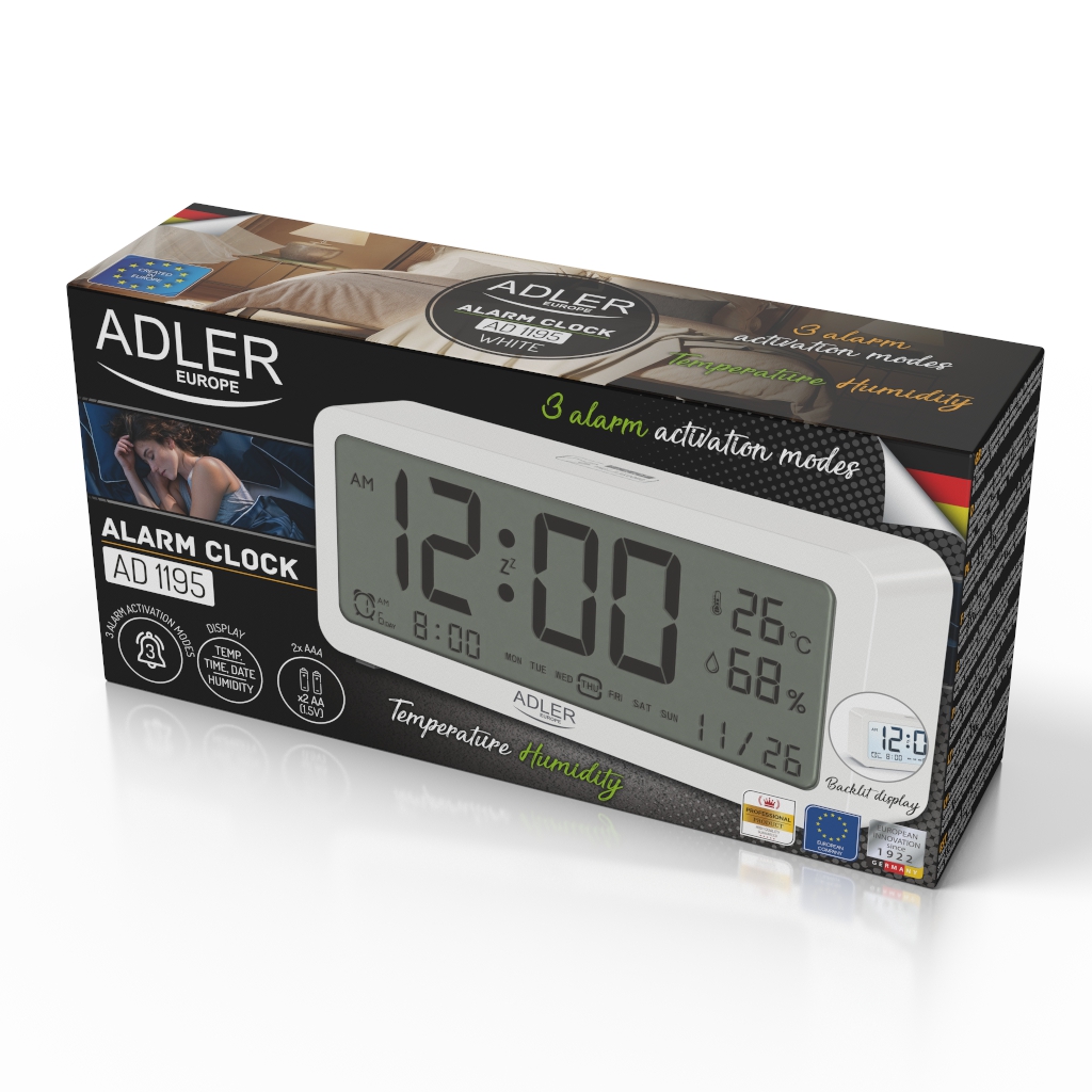 - Wyświetla: czas, datę, temperaturę, wilgotność