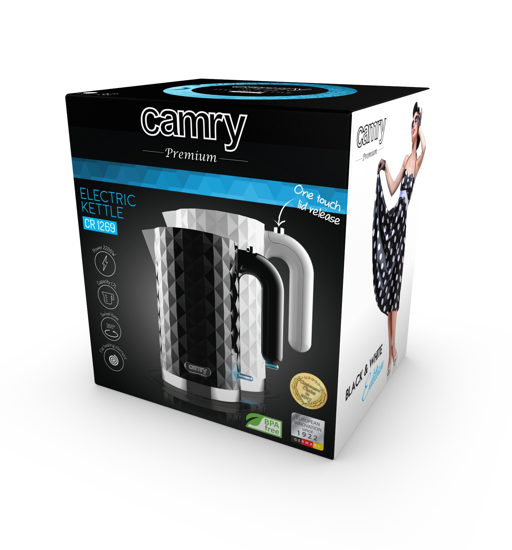 Czajnik Camry CR 1269 o mocy maks. 2200W wyznacza nowe trendy w designie sprzętu domowego. To ekskluzywna seria czajników, wybierana przez ludzi, którzy cenią atrakcyjny wygląd. Czajnik CR 1269 to znacznie więcej niż tylko przedmiot użytkowy – stanowi również niebagatelną ozdobę kuchni. Doskonały zarówno do nowocześnie urządzonego domu, jak i do przestrzeni reprezentacyjnej, jak biuro, kancelaria czy pokój konferencyjny. Pojemność 1,7l daje możliwość jednoczesnego przygotowania wrzątku dla kilku osób.