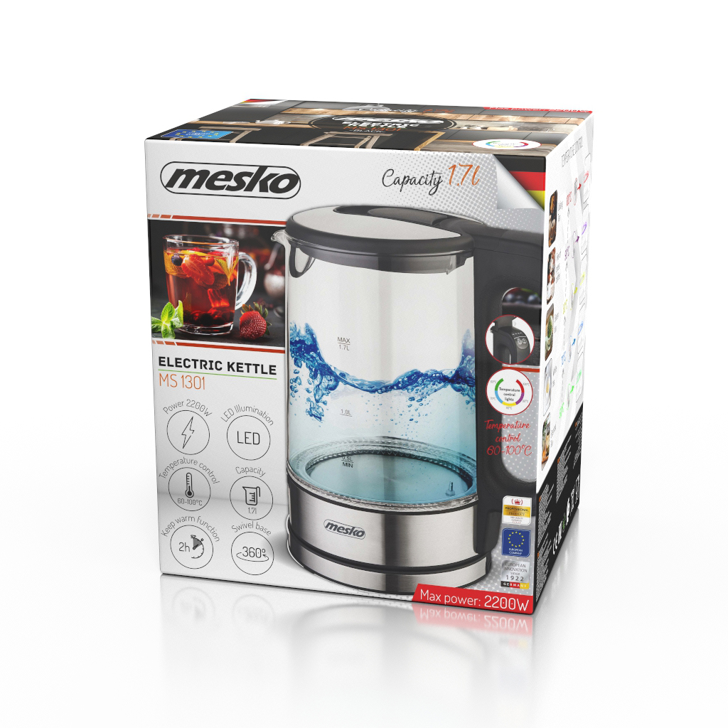 Szklany czajnik z regulacją temperatury to sprzęt, który powinien znaleźć się w każdym domu. Korzystając z niego, można wybrać jeden z kilku zakresów temperatur od 60 do 100 stopni Celsjusza, dzięki czemu dostosujemy ciepło wody do rodzaju zaparzanej herbaty lub ziół. Czajnik został wyposażony w funkcja podtrzymania temperatury. Eleganckie wykończenie elementami ze stali nierdzewnej, uroczy dzióbek, wygodny uchwyt do otwierania oraz obrotowa podstawa ułatwiają korzystanie z urządzenia osobom leworęcznym, oraz dzieciom. Ciekawymi akcentami są również różne odcienie podświetlenia wody w zależności od ustawionej temperatury oraz sygnał dźwiękowy podczas uruchamiania i po zagotowaniu.