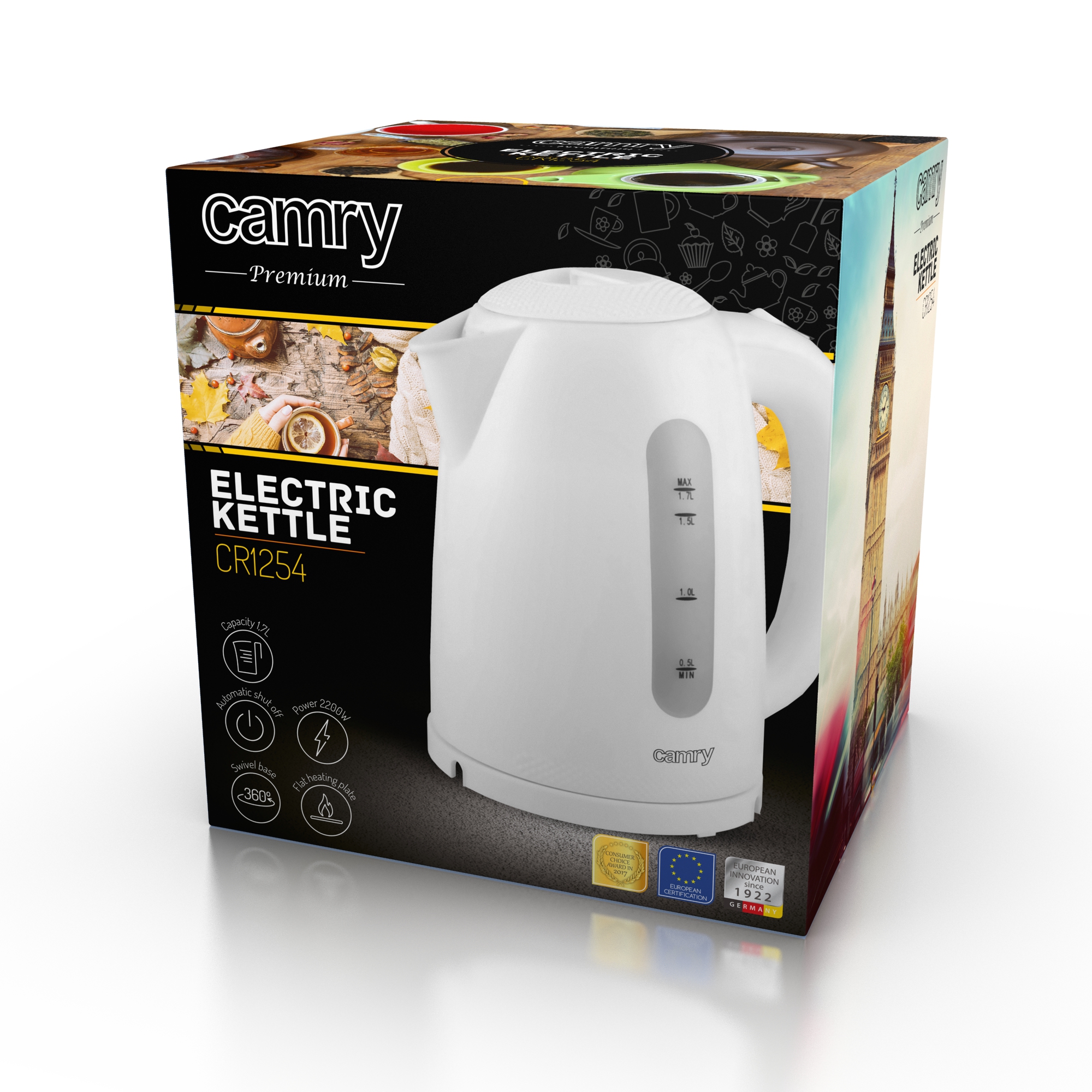 Duży, elektryczny czajnik rodzinny, pozwalający sprawnie zagotować wodę na herbatę dla 6-7 osób dzięki mocy 2200W. Zaopatrzony w wyraźny wskaźnik poziomu wody, wyłączy się automatycznie po jej zagotowaniu. Blokada uniemożliwi również włączenie pustego czajnika, oszczędzając w ten sposób energię i dbając o bezpieczeństwo użytkownika. Filtr osadów zapewni natomiast odpowiednią jakość wody. Dla wygody został zaopatrzony w obrotową podstawę, płaskie dno oraz grzałkę za stali szlachetnej i lampkę informująca o zagotowaniu wody. Pozwala zagotować na raz 1,7l wody.