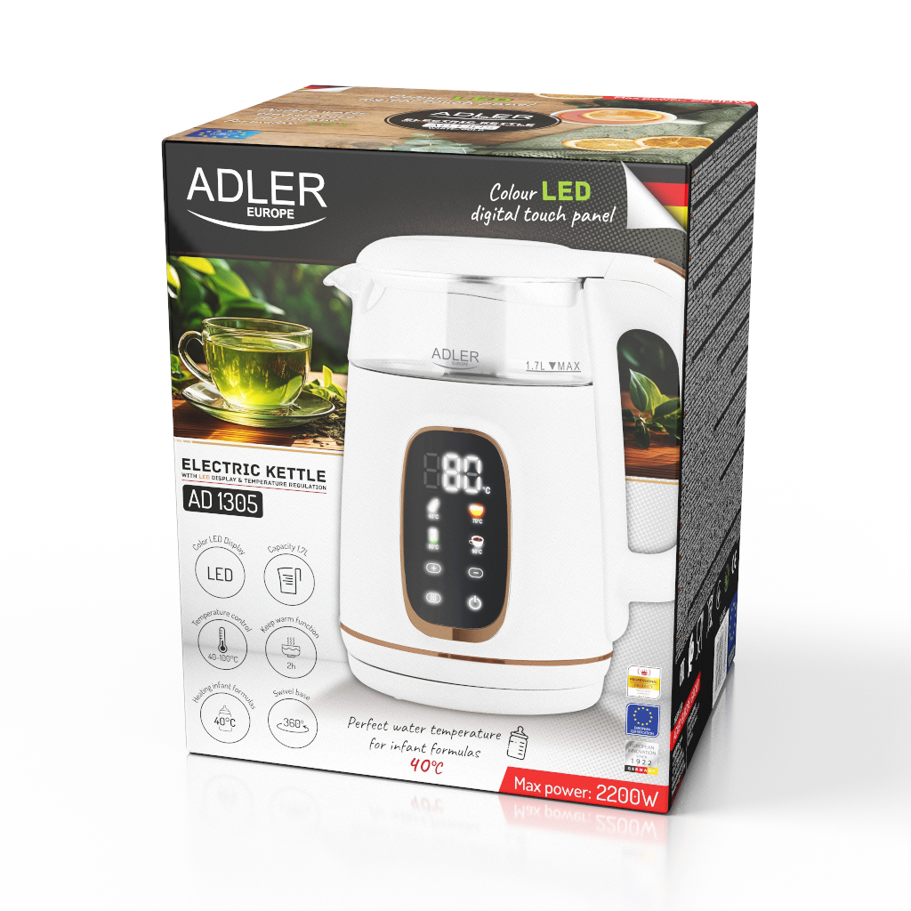Adler AD 1305 to nie tylko czajnik, ale także stylowe uzupełnienie każdej kuchni, które pozwala cieszyć się napojami o idealnej temperaturze. Oferowany w sześciu wersjach kolorystycznych dla najbardziej wymagających klientów.