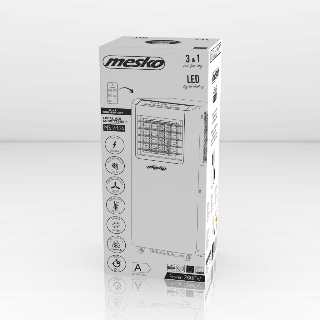 Dbając o wygodę użytkowania, klimatyzator wyposażono w pilot zdalnego sterowania, wyświetlacz, a także w czasomierz, umożliwiający automatyczne włączenie lub wyłączenie w określonym czasie. Wygodne uchwyty po bokach oraz kółeczka na spodzie ułatwiają ustawianie i przemieszczanie klimatyzatora bez wysiłku oraz niszczenia powierzchni podłóg. Wydajność chłodzenia mierzona w BTU to 9000.