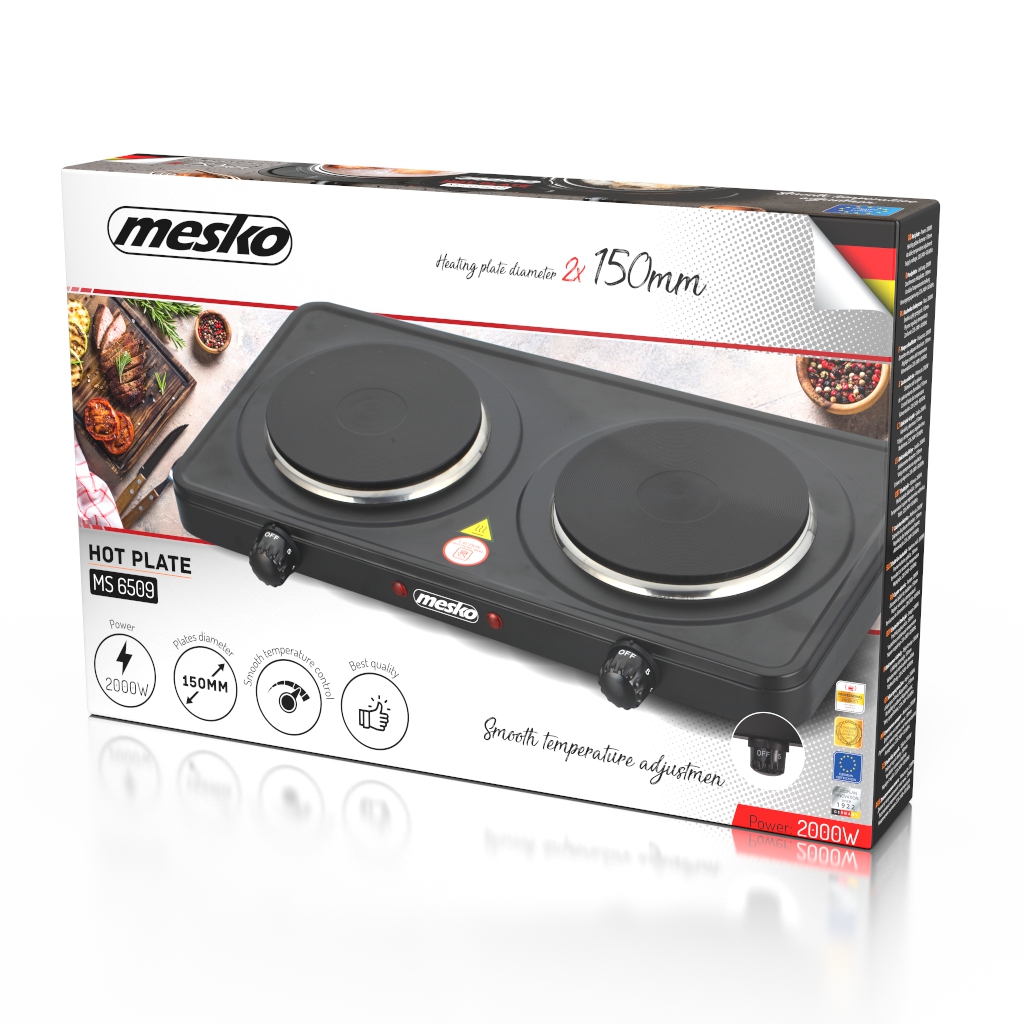 Dwupalnikowa kuchenka elektryczna pozwala na jednoczesne wykorzystanie dwóch różnej wielkości płyt grzejnych, o łącznej mocy 2000W. Model MS 6509 sprawdza się w wielu sytuacjach – zarówno w czasie awarii sieci zasilania gazem czy przy braku możliwości podłączenia gazu, jak również w czasie remontu kuchni, kiedy nie można skorzystać z zainstalowanej tam na stałe kuchenki. Kuchenka elektryczna jest również użyteczna do domków letniskowych i na wyjazdy. Stanowi znacznie bezpieczniejszą alternatywę dla kuchenek podłączanych do butli z gazem.