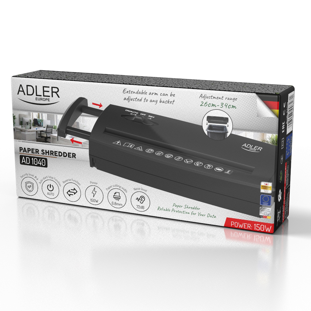 Zadbaj o bezpieczeństwo swoich danych i dokumentów dzięki praktycznej i kompaktowej niszczarce Adler AD 1040. To idealne urządzenie dla użytkowników domowych i małych biur, którzy potrzebują prostego, ale skutecznego rozwiązania do niszczenia papieru. Jej wyjątkową zaletą jest możliwość dopasowania do różnych pojemników na odpady, co daje dużą elastyczność w użytkowaniu.