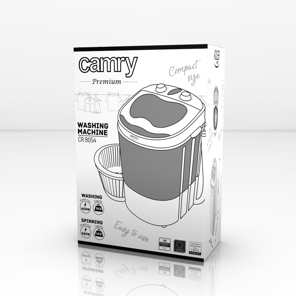 Pralka turystyczna, doskonała na dłuższe wyjazdy z rodziną. Z łatwością mieści się w bagażniku czy przyczepie kempingowej. Sprawdza się również w domkach letniskowych dzięki cichej i wydajnej pracy. Waży jedynie 6 kg, może jednak zmieścić do 3 kg ubrań. Osiąga moc maksymalną 400 W co w zupełności wystarcza by wyprać ubrania wykorzystane podczas uprawiania sportu lub pracy w ogródku. Zaprojektowana, by zużywać jak najmniej wody i energii, pralka jest dobrym wyposażeniem tych, którzy cenią na raz czystość i aktywność. Posiada także funkcję wirowania, z której można skorzystać po wypraniu ubrań i odprowadzeniu wody.