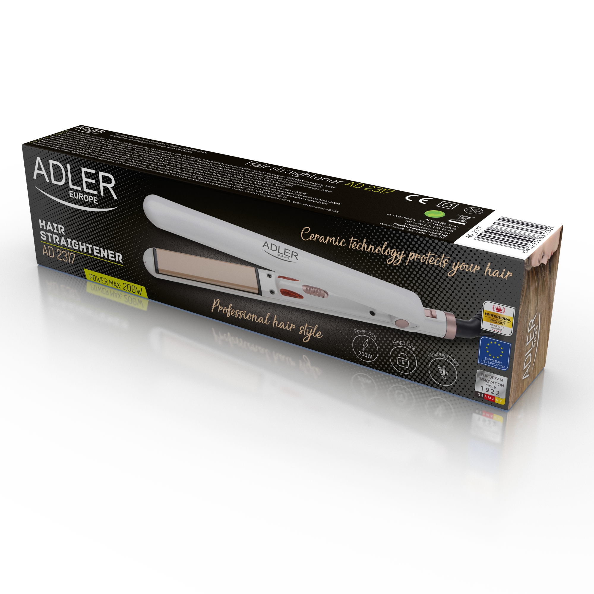 Prostownica z płytkami ceramicznymi o mocy maksymalnej 200 W. Przylegające ruchome płytki dobrze dociskają włosy aby je skutecznie wyprostować. Skutecznie prostuje odstające i kręcące się kosmyki włosów. Dobry wybór dla osób, którym zależy na gładkiej fryzurze. Dzięki płytkom ceramicznym włosy niszczą się znacznie mniej niż w przypadku prostownic całkowicie metalowych. Prostownica jest lekka i wygodna w użytkowaniu. Blokada ramion ułatwi przechowywanie.