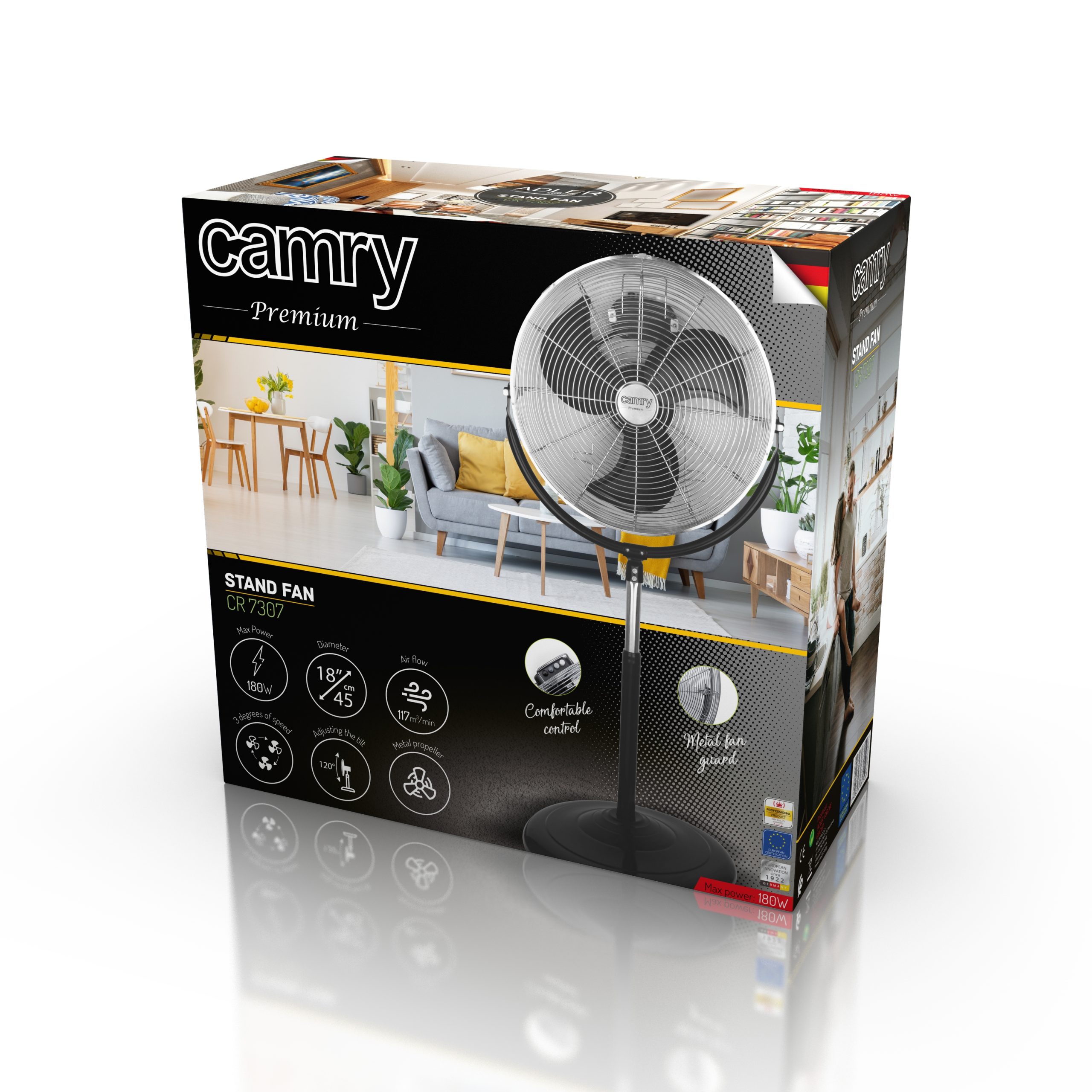 Wydajny cyrkulator powietrza z metalowym śmigłem o średnicy 45cm. Zapewnia przyjemny nawiew chłodnego powietrza. Cyrkulator jest łatwy w obsłudze i uniwersalny dzięki 3 zakresom prędkości i regulacji kąta nachylenia. Wyposażony w stabilną podstawą pozwalającą również regulować wysokość na której działa nawiew. Dysponuje mocą 180 W.