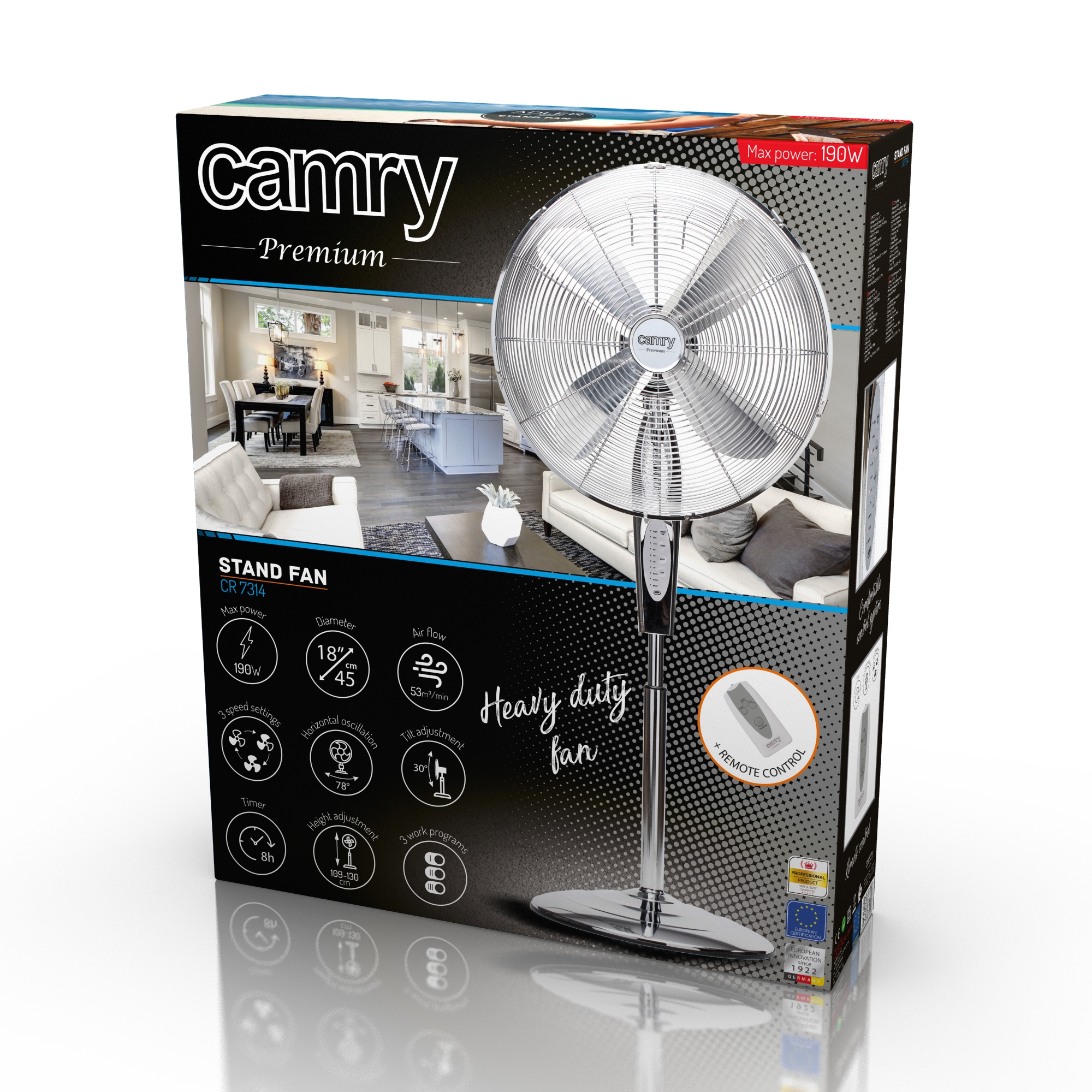 Cyrkulator CR7314 został wyposażony w system sterowania pilotem, dzięki czemu nie trzeba wstawać i podchodzić, by zmienić siłę nadmuchu, włączyć lub wyłączyć urządzenie. Dodatkowo cyrkulator może być ustawiony w miejscu mniej dostępnym, na przykład za biurkiem, a i tak korzystanie z niego będzie bardzo wygodne. Wyjątkowy komfort użycia idzie w parze z eleganckim wyglądem, który decyduje o możliwości wykorzystania urządzenia w przestrzeni przeznaczonej do przyjmowania kontrahentów – m. in. w biurach, sklepach i obiektach usługowych.