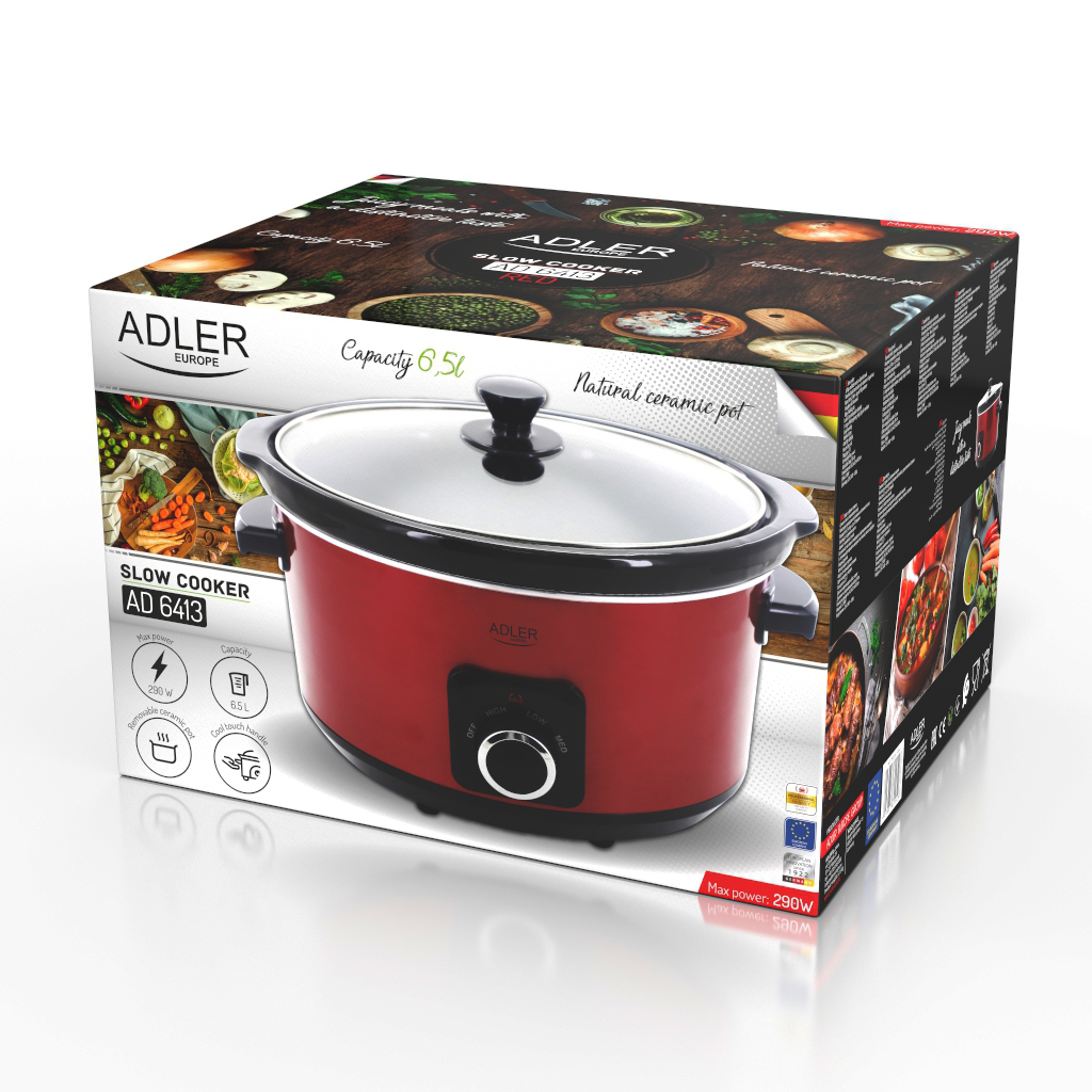 Kod Towaru: 5903887809528, Wolnowar to urządzenie gotujące potrawy w niższej temperaturze niż tradycyjne gotowanie. Wolnowar Adler 6413r to idealne rozwiązanie dla osób chcących aby potrawy nie traciły walorów smakowych i zdrowotnych podczas gotowania. Posiłki przygotowane w wolnowarze bogate są w mikroelementy i witaminy które ulegają zniszczeniu podczas tradycyjnego gotowania w temperaturach zbliżonych do temperatury wrzenia. Wyjmowana ceramiczna misa łatwa jest do umycia. Jej naturalny surowiec nie zmienia smaku potraw i gwarantuje równomierne rozprowadzenie ciepła oraz długie jego utrzymanie w naczyniu. Pomimo, że urządzenie jest gorące podczas pracy, nienagrzewający się uchwyty umożliwia komfortowe użytkowanie. Szklana pokrywa wykonana jest z bezpiecznego hartowanego szkła, ułatwia nadzorowanie procesu gotowania bez otwierania misy. Objętość misy – 5,8 litra – pozwala na przygotowanie jednogarnkowego dania dla dużej rodziny albo na 2 dni. Urządzenie ma 3 poziomy temperatury gotowania: niski, średni i wysoki, który dopasujesz do typu gotowanej żywności.