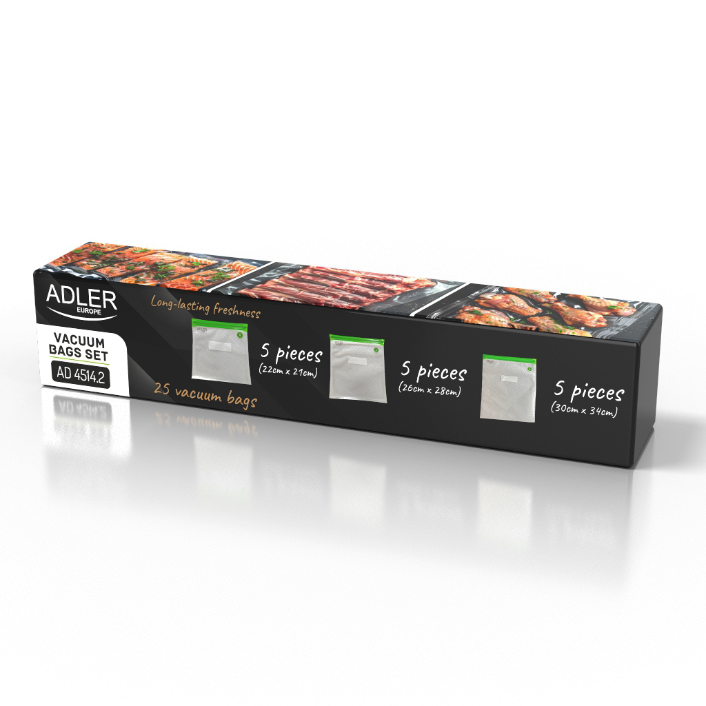 Zachowaj świeżość swojej żywności na dłużej z zestawem Adler AD 4514.2, który zawiera 15 torebek próżniowych wielokrotnego użytku. Te wysokiej jakości torebki są idealne do przechowywania różnych produktów spożywczych, pomagając zachować ich smak i wartości odżywcze. Doskonałe zarówno do codziennego użytku, jak i przygotowywania posiłków, ułatwiają konserwację żywności.