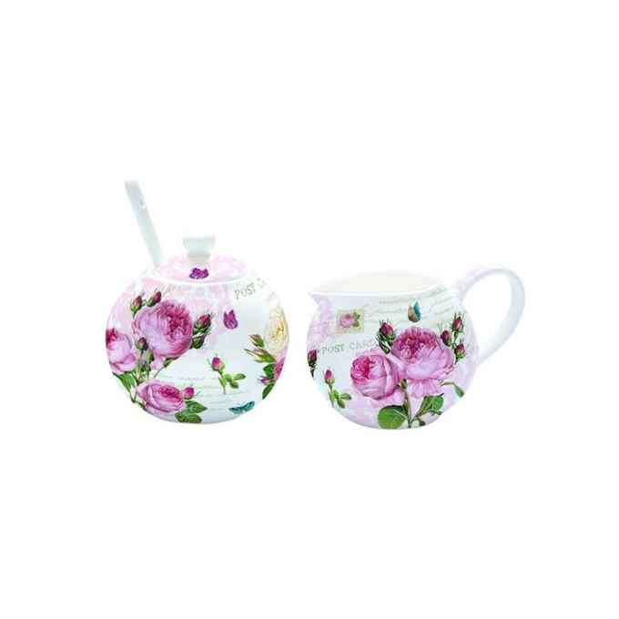 Kod Towaru: 8001544035826, Zestaw porcelanowy składający się z cukiernicy z łyżeczką i dzbanuszka na mleko o pojemności 150ml każdy, w kolorowym opakowaniu