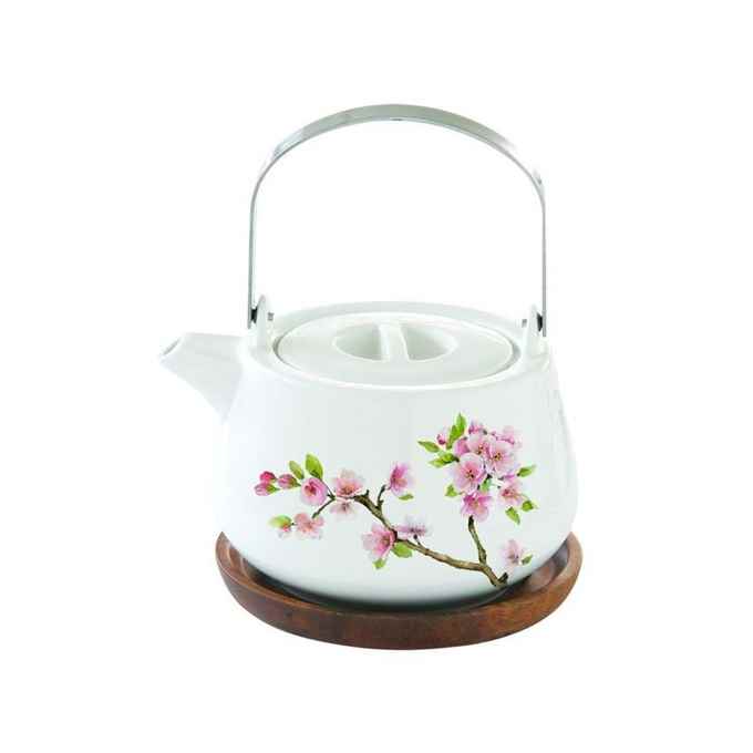 Kod Towaru: 8001544098425, Porcelanowy czajnik z akacjową podstawką, o pojemności 750ml,w kolorowym opakowaniu