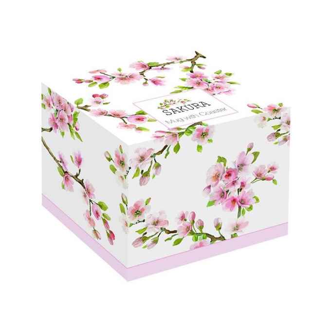 Kod Towaru: 8001544098241, Kubek z porcelany o pojemności 350ml z podkładką akacjową,w kolorowym opakowaniu