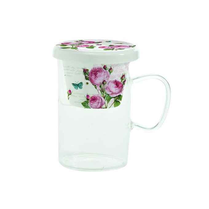 Kod Towaru: 8001544003498, Kubek ze szkła borokrzemowego o pojemności 325ml wraz porcelanowym zaparzaczem i pokrywką,w kolorowym opakowaniu
