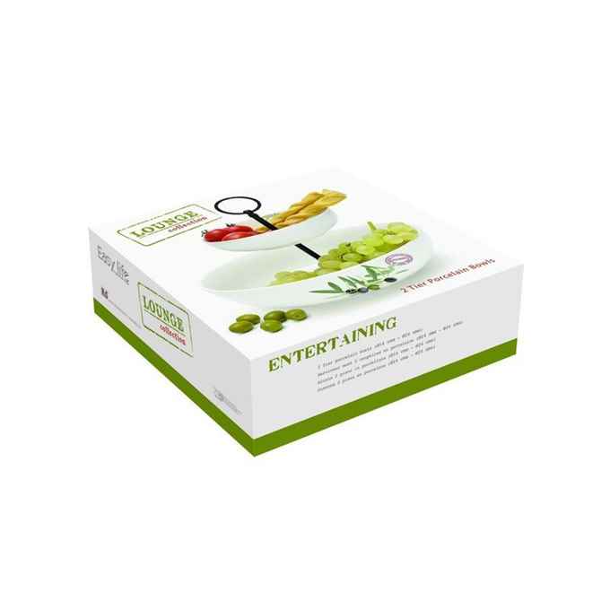 Kod Towaru: 8001544078892, Porcelanowa patera dwupoziomowa o średnicach: górna 14 cm, dolna 24 cm,w kolorowym opakowaniu