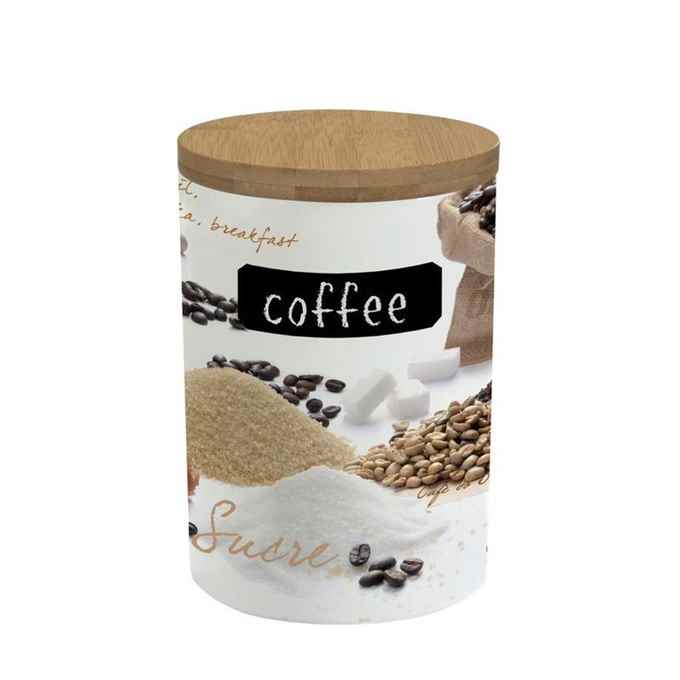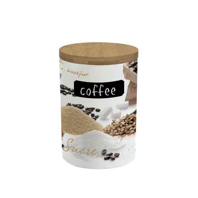 Kod Towaru: 8001544047126, Porcelanowy pojemnik z miejscem na opis o wymiarach O11x16 cm i pojemności 1000g, z bambusową przykrywką i kredą,