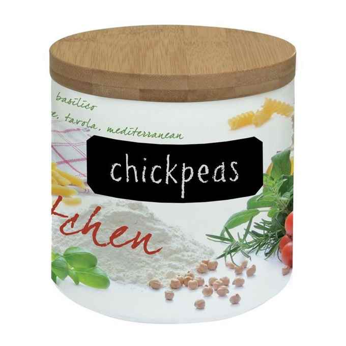 Kod Towaru: 8001544047089, Porcelanowy pojemnik z miejscem na opis o wymiarach O9x9 cm i pojemności 250g, z bambusową przykrywką i kredą,