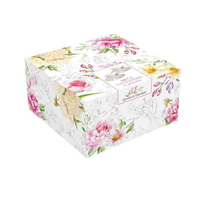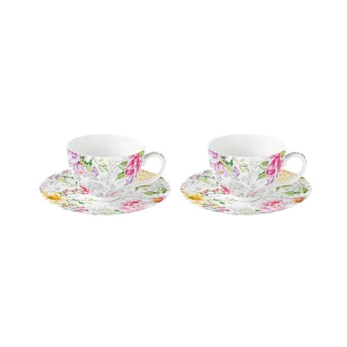 Kod Towaru: 8001544099729, Zestaw porcelanowy składający się z dwóch filiżanek o pojemności 240ml wraz talerzykami,w kolorowym opakowaniu