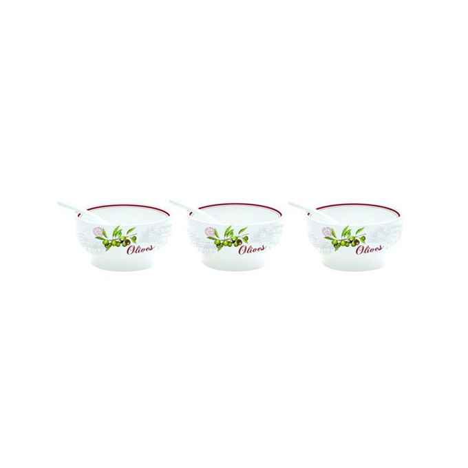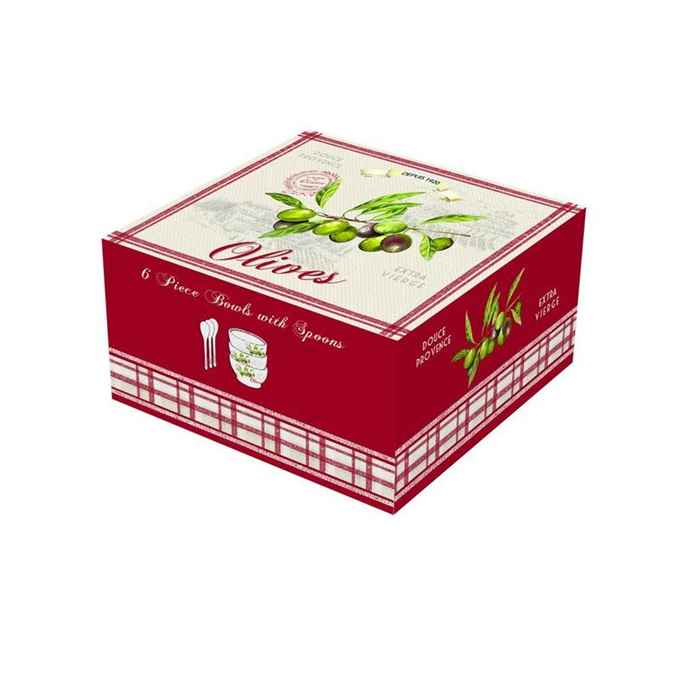 Kod Towaru: 8001544999814, Zestaw trzech porcelanowych miseczek o średnicach 9 cm wraz z łyżeczkami,w kolorowym opakowaniu