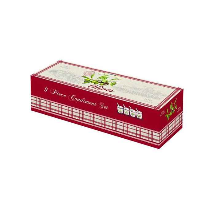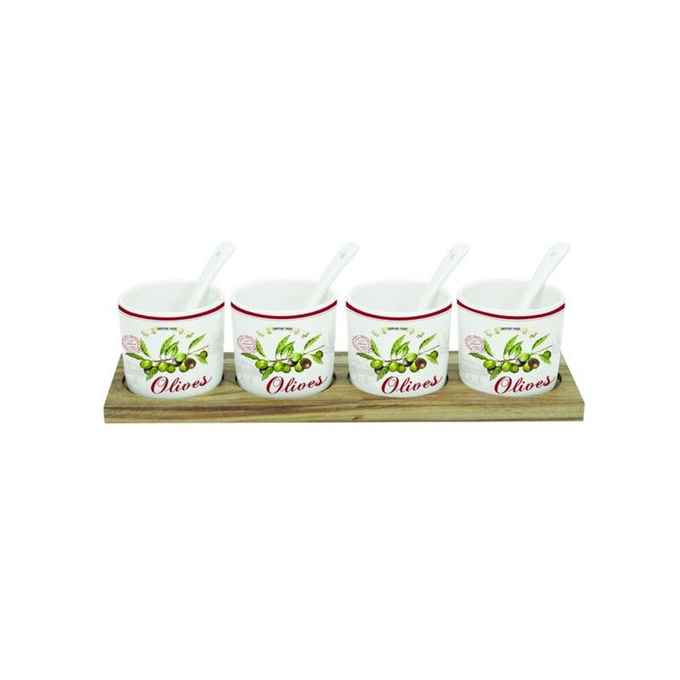 Kod Towaru: 8001544999838, Zestaw porcelanowy czterech miseczek wraz z łyżeczkami i tacy o wymiarach 28×8 cm,w kolorowym opakowaniu