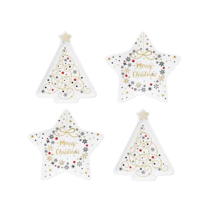 Kod Towaru: 8001544106410, Zestaw 4 różnych podkładek na herbatę z porcelany  Średnica: 10,5 (star); wymiary: 8,5 x 10,5 (tree)