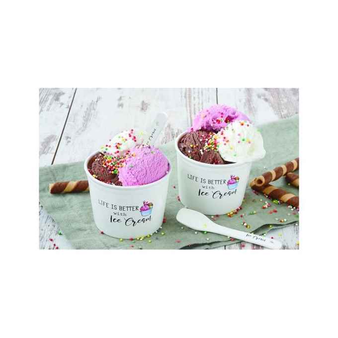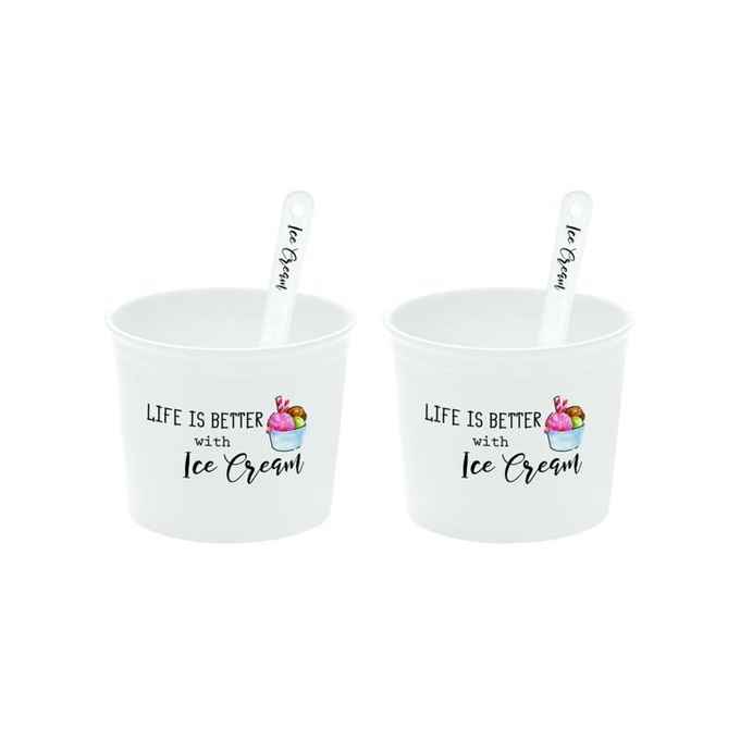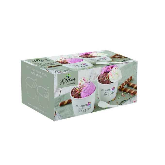 Kod Towaru: 8001544100395, Zestaw porcelanowy do serwowania lodów, składajacy się z dwóch kubeczków o średnicy 8,5 cm i łyżeczek