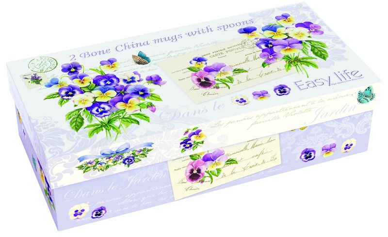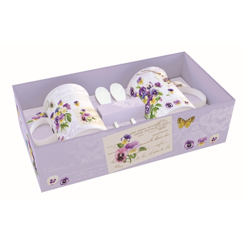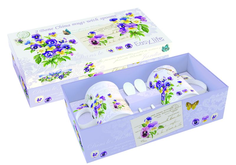 Kod Towaru: 8001544058825, Zestaw porcelanowy składający się z dwóch kubków o pojemności 300ml wraz z łyżeczkami, w prezentowym pudełku