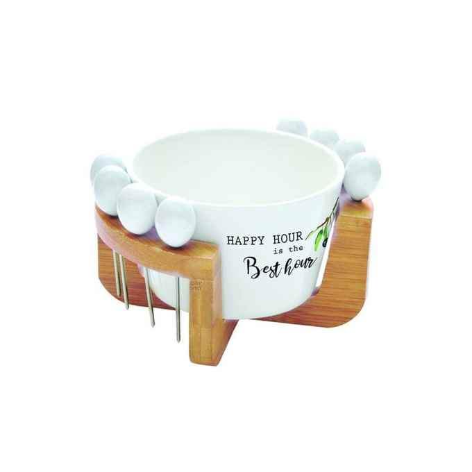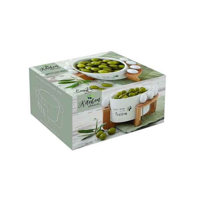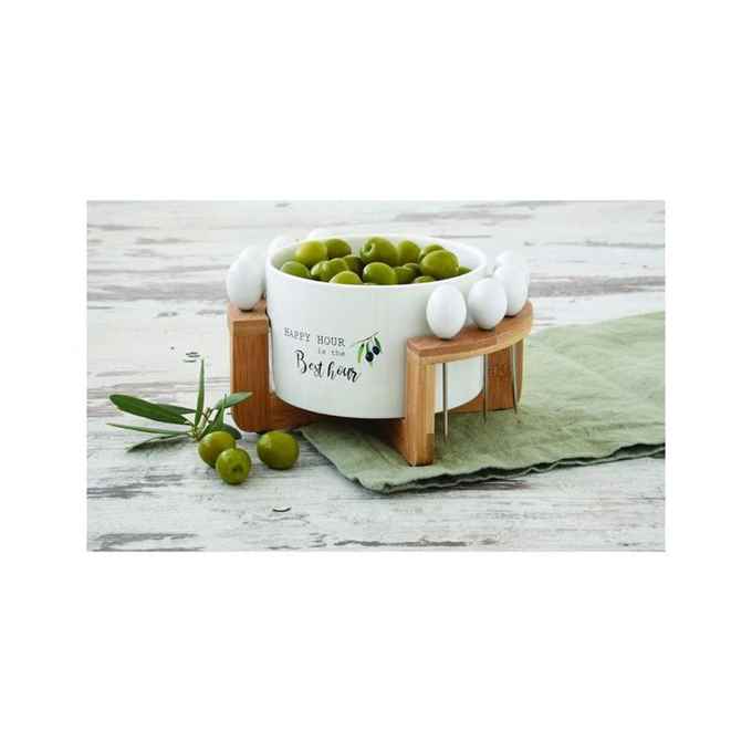 Kod Towaru: 8001544100227, Porcelanowa miseczka o średnicy 15 cm z drewnianym stojakiem i ośmioma widelczykami,w kolorowym opakowaniu
