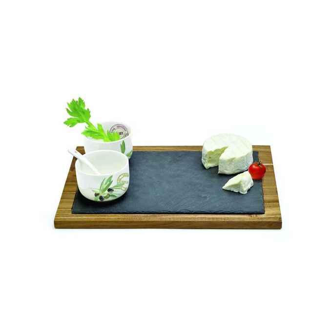 Kod Towaru: 8001544078885, Drewniana taca o wymiarach 33×23,5 cm, w zestawie z dwoma porcelanowymi miseczkami i łyżeczkami,w kolorowym opakowaniu