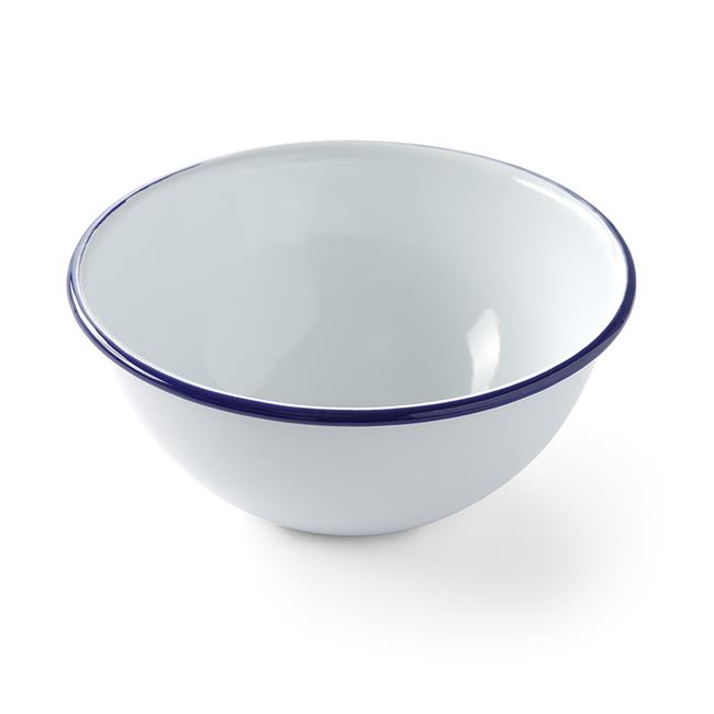 - Stal pokryta białą emalią z delikatnym niebieskim brzegiem