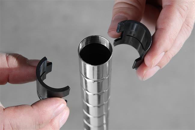 Wykonany ze stali, dostępny w wersji chromowanej lub czarnej malowanej proszkowo.