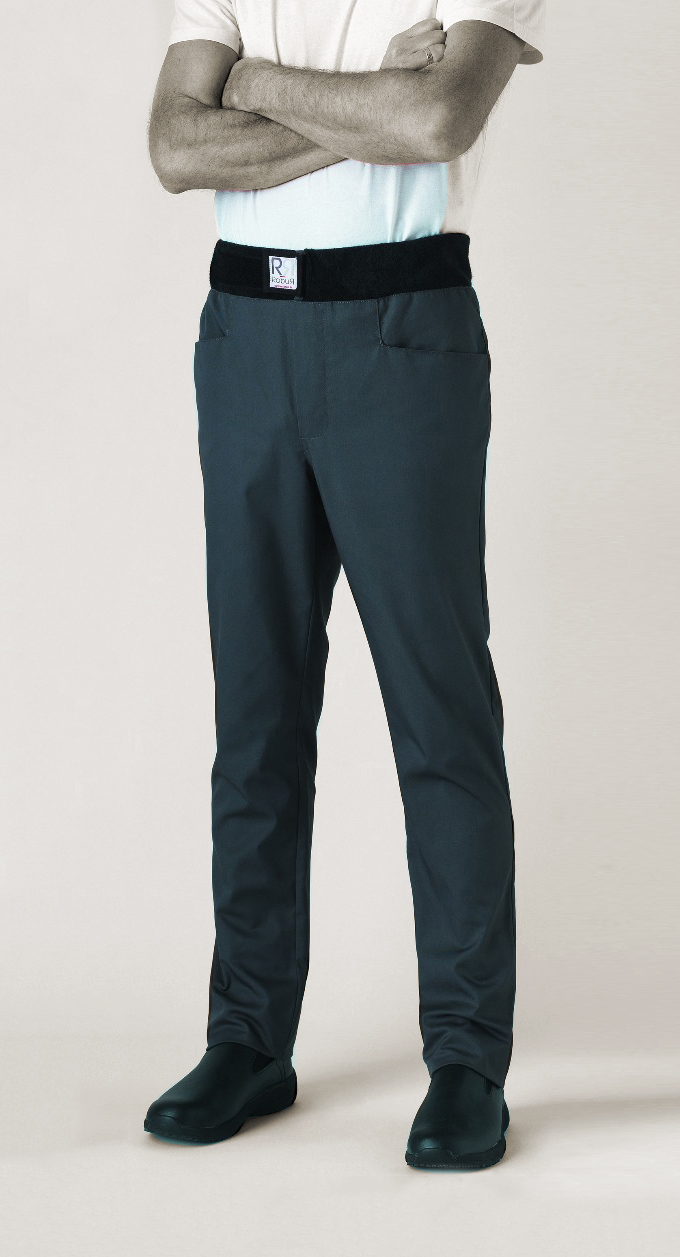tkanina: polibawełna 195 g/m2 (65% poliester, 35% bawełna) zapinane na suwak przednie kieszenie typu western wszyta tylna kieszeń elastyczny pasek podszyty wewnątrz tkaniną frotte zwężane nogawki dopasowany krój