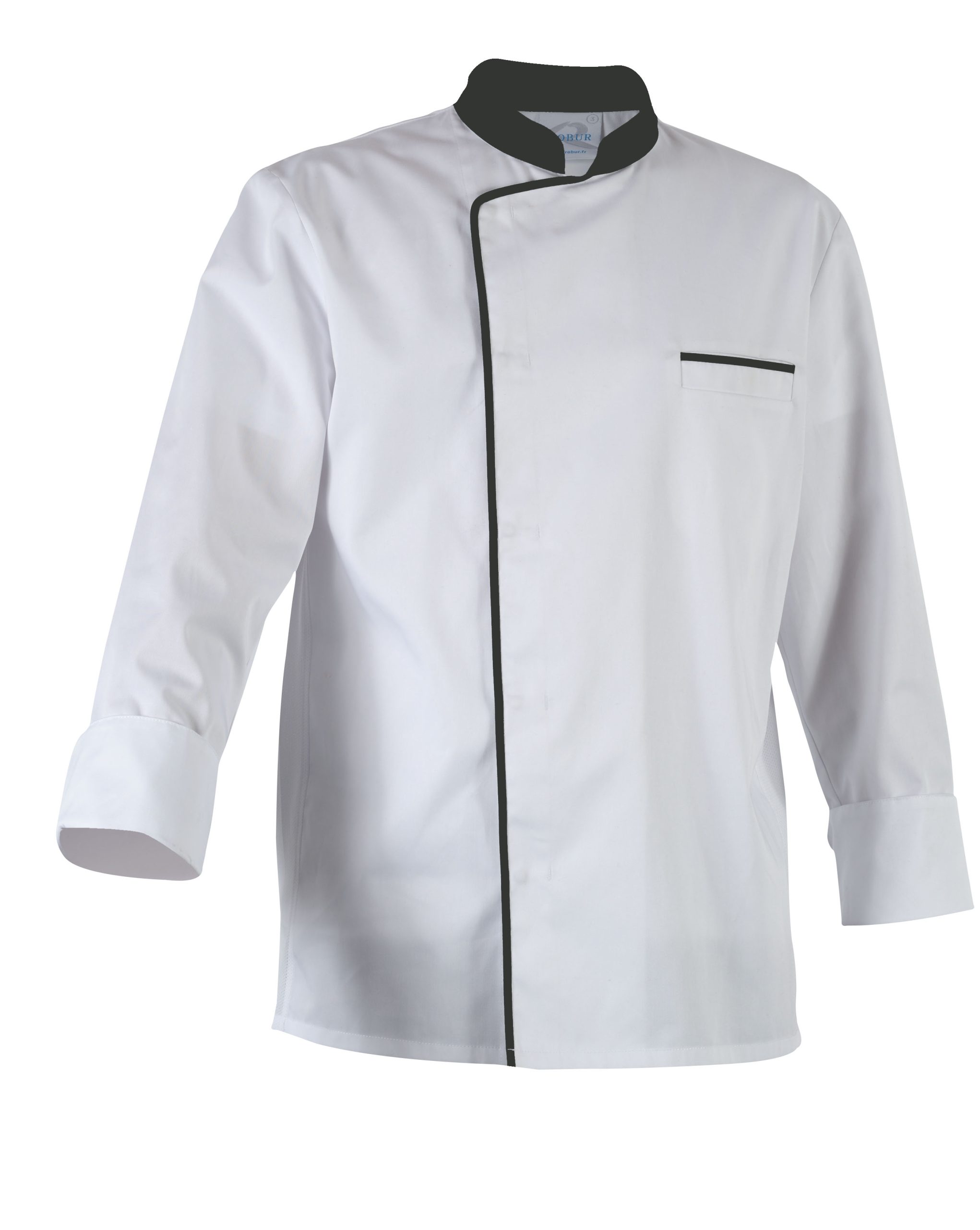 tkanina: polibawełna 215g/m2 (65% poliester, 35% bawełna) długi rękaw kontrastowa lamówka i stójka w kolorze szarym kieszeń na piersi i mała na rękawie zapinany na kryte zatrzaski po bokach oddychająca tkanina dżersejowa prosty krój