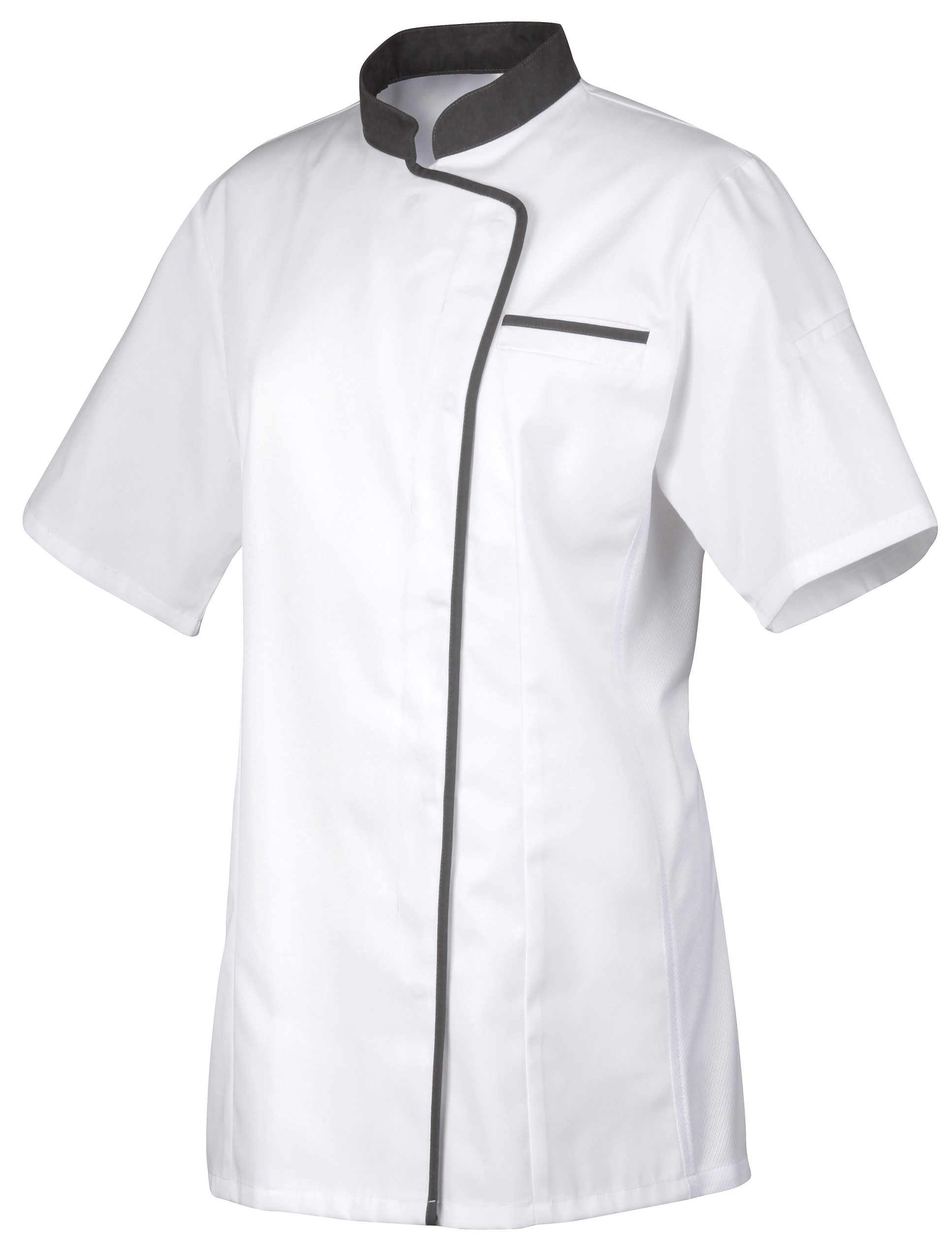 tkanina: polibawełna 215g/m2 (65%poliester, 35% bawełna) krótki rękaw kontrastowa lamówka i stójka w kolorze szarym kieszeń na piersi i mała na rękawie zapinany na kryte zatrzaski po bokach oddychająca tkanina dżersejowa krój lekko taliowany