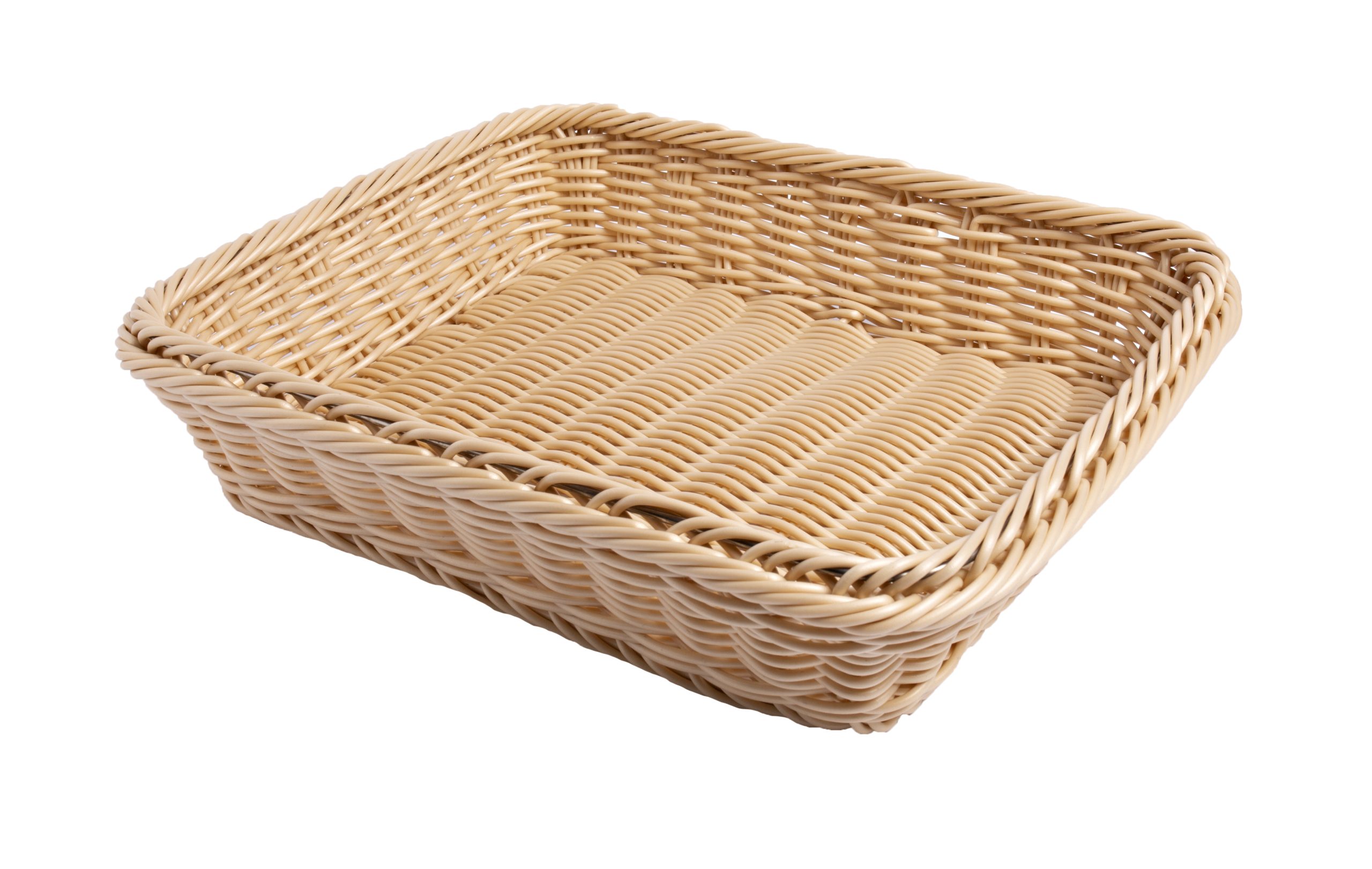 wykonany z poliratanu kolor jasny beż solidne wykonanie z ramą z drutu ze stali nierdzewnej do stabilizacji koszyka odporny na wodę wykonany z twardego, elastycznego, nietłukącego materiału możliwość sztaplowania przyjazny dla środowiska nadający się do r