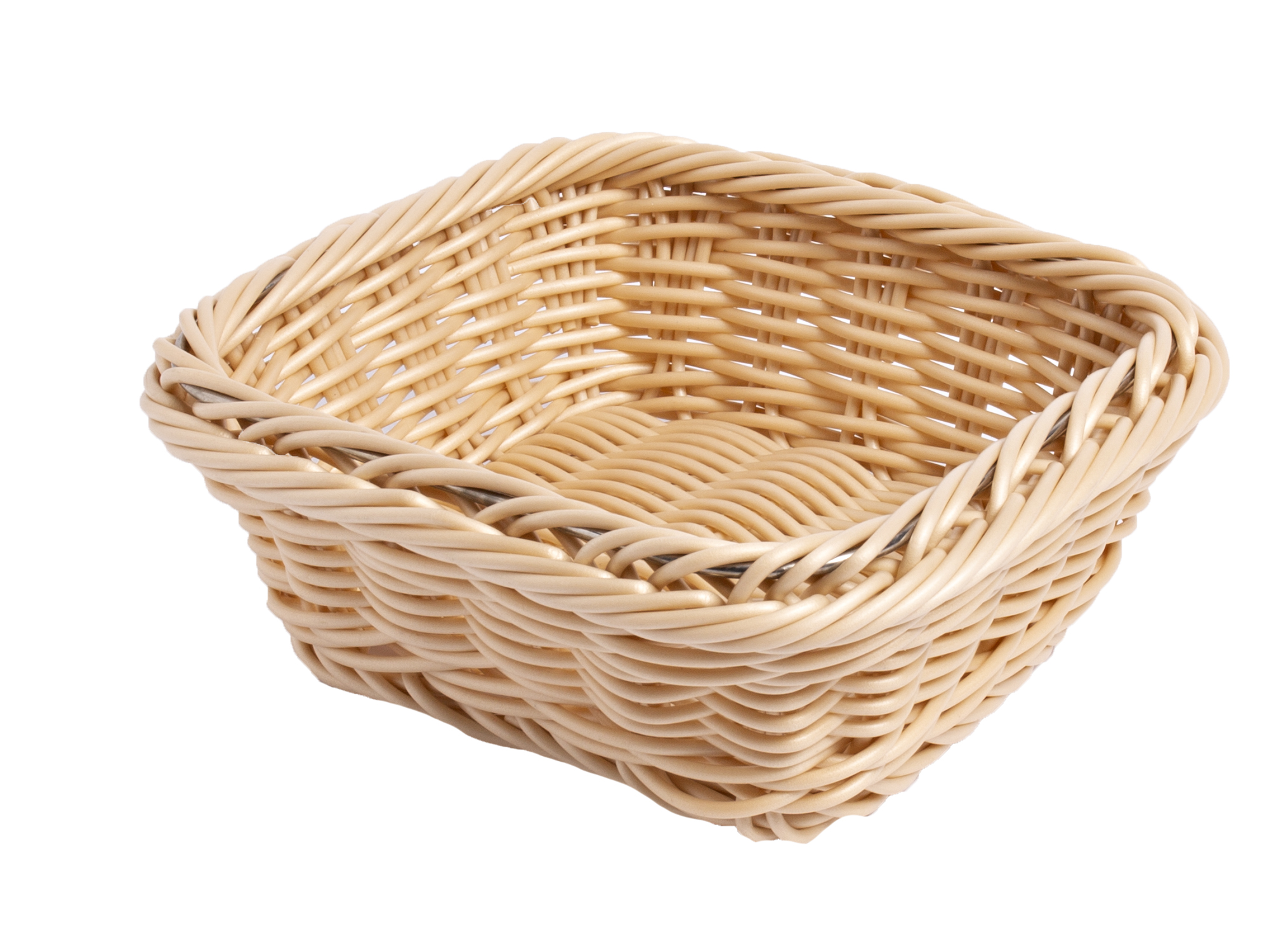wykonany z poliratanu kolor jasny beż solidne wykonanie z ramą z drutu ze stali nierdzewnej do stabilizacji koszyka odporny na wodę wykonany z twardego, elastycznego, nietłukącego materiału możliwość sztaplowania przyjazny dla środowiska nadający się do r