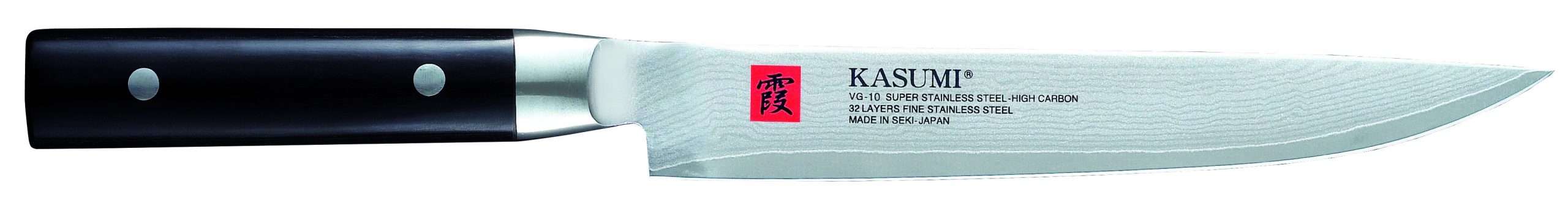 ostrze: stal damasceńska 32 warstwy stali skuwanej na gorąco twardość 59-61 HRC ostrze wąskie, zdobione dwustronnie tradycyjnym wykończeniem bardzo wysoka ostrość noża rękojeść: twarde drewno pakka lekka wygodna w użytkowaniu