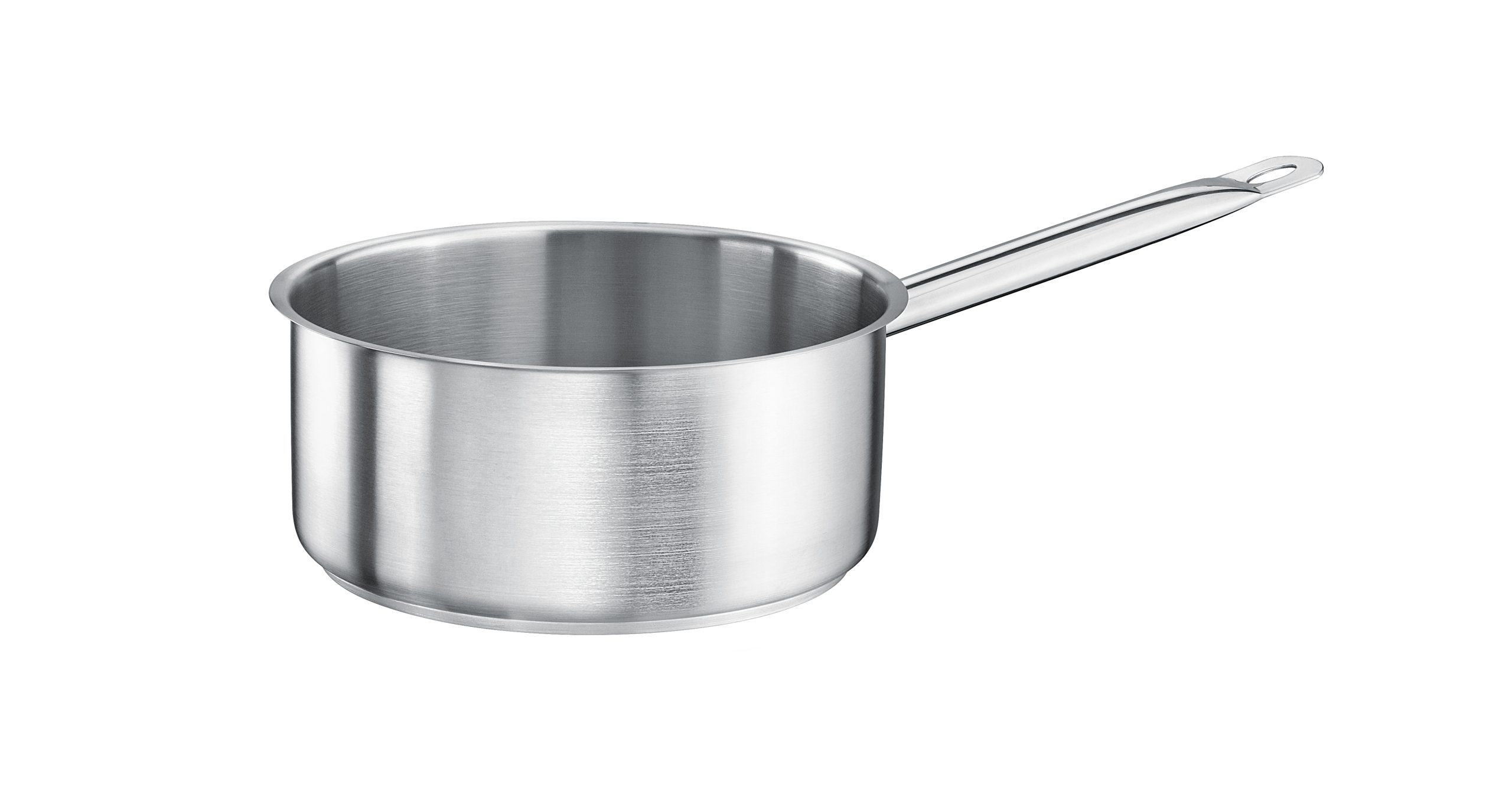 najwyższej jakości stal nierdzewna 18/10 satynowe wykończenie tłoczone z jednego kawałka stali grubość ścianki od 1 mm do 1,2 mm beznitowe mocowanie uchwytów trzywarstwowe, grube dno sandwich wywinięte i zaokrąglone ranty nadają się do mycia w zmywarka