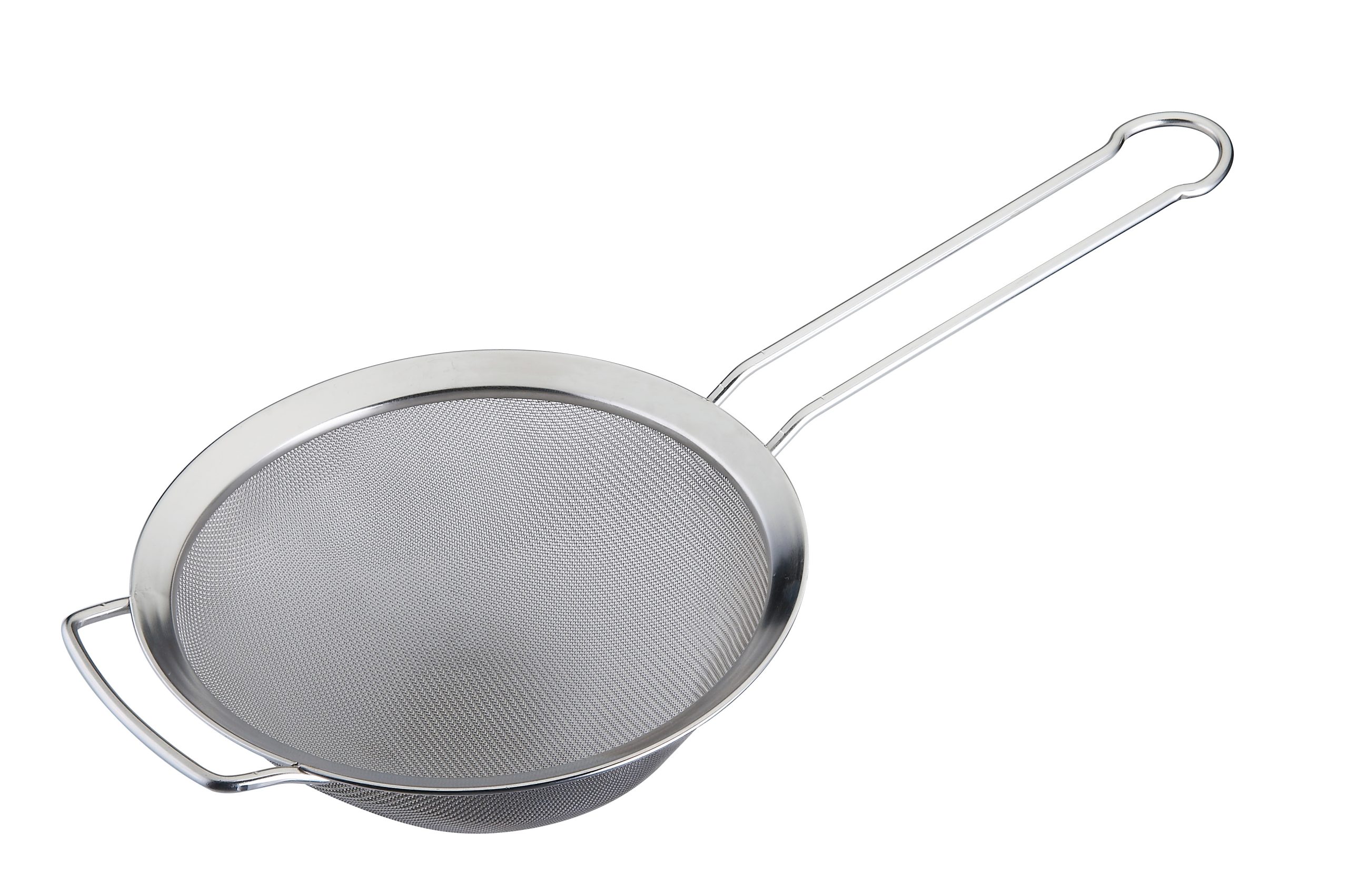 stal nierdzewna 18/10 drobna siatka 6,5 otworów/cm2 uchwyt z możliwością zawieszenia można myć w zmywarce