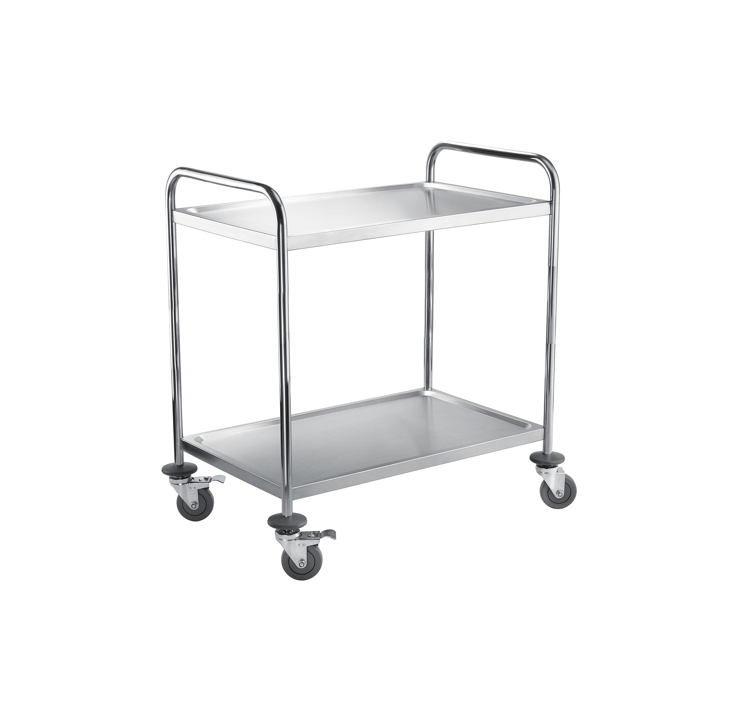 stal nierdzewna konstukcja skręcana półki z wytłoczeniem uniemożliwiającym spadanie przewożonych produktów 4 koła skrętne, 2 z hamulcami obciążenie pólki 70 kg, obciążenie wózka 110 kg