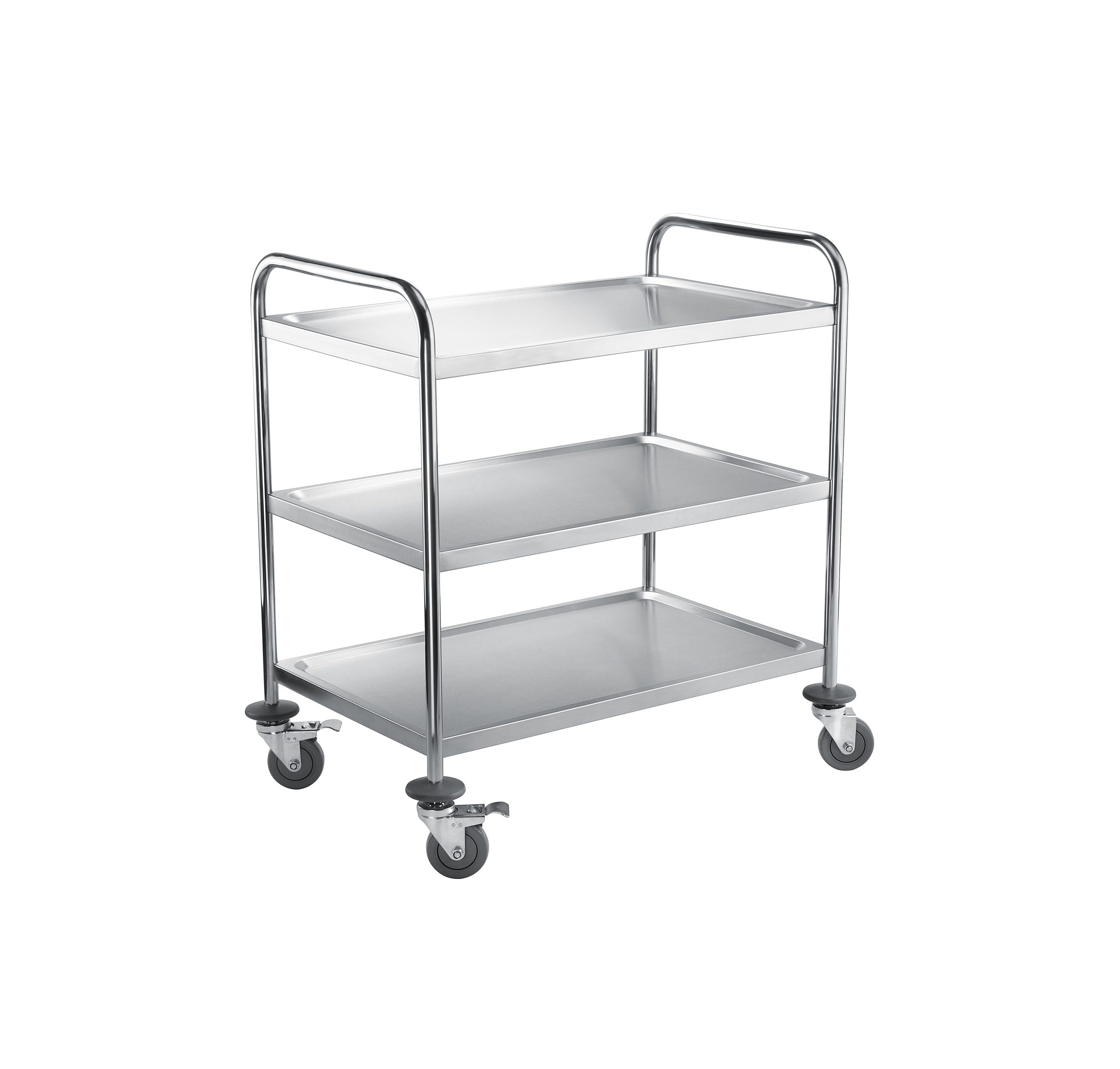 stal nierdzewna konstukcja skręcana półki z wytłoczeniem uniemożliwiającym spadanie przewożonych produktów 4 koła skrętne, 2 z hamulcami obciążenie pólki 70 kg, obciążenie wózka 110 kg